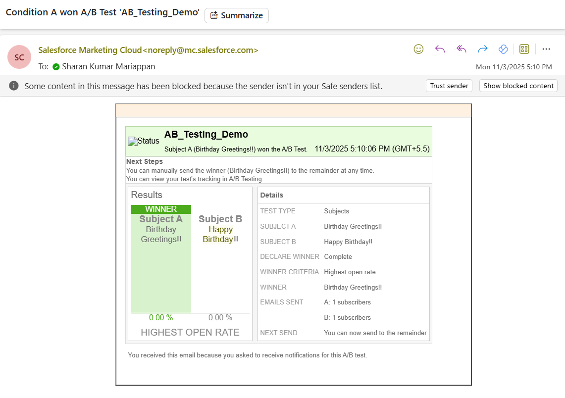 By this way Aintiran has built A/B Testing in the Marketing Cloud. The engagement has been improved and the team has got appreciation for their efforts. I hope you love the content in this blog. Also, I hope you have gained some adequate knowledge of A/B Testing. In the upcoming blog, we will explore more concepts in Marketing Cloud. Please follow our latest blogs for more content related to the Marketing Cloud.
