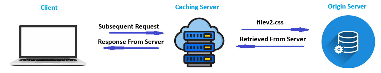 In the next request, the system checks the cache server. Since the data from the first request is already stored there, it retrieves the data directly from the cache instead of the actual server. As a result, the same data from the initial request is returned. This process is known as caching.