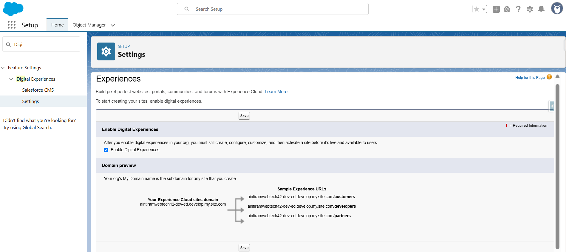 Open the Settings > Enable the Digital Experience checkbox and Save it.