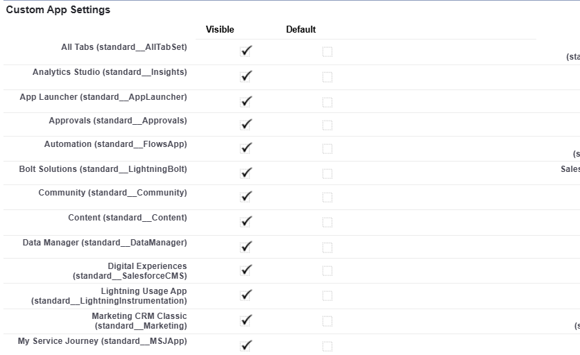 Under Custom App Settings, make sure Digital Experiences (Standard__SalesforceCMS) is set to Visible.