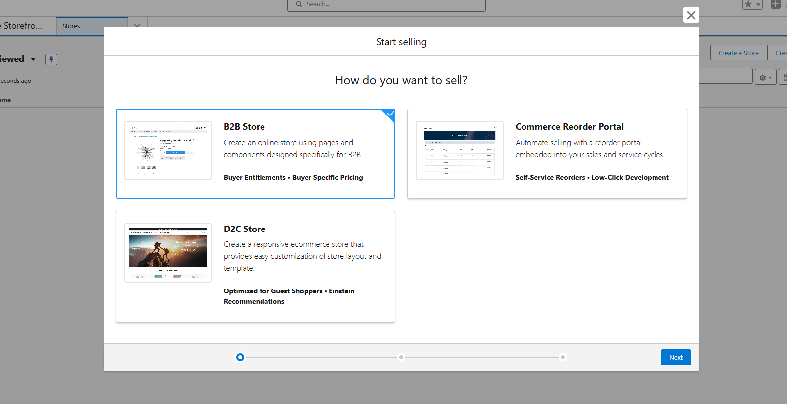 Commerce Cloud provides the option to create different types of stores. Each store integrates with product configurations, catalogs, pricebooks, and customer-specific details. All the configurations are handled in one place for buyers.