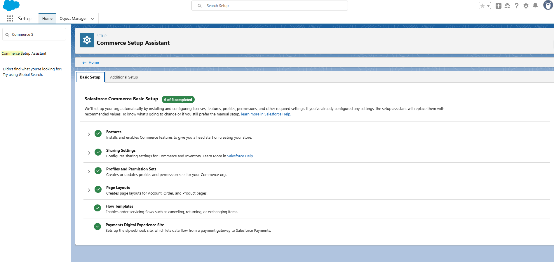 The Commerce Setup Assistant automates many steps needed to prepare your system for a full commerce implementation.