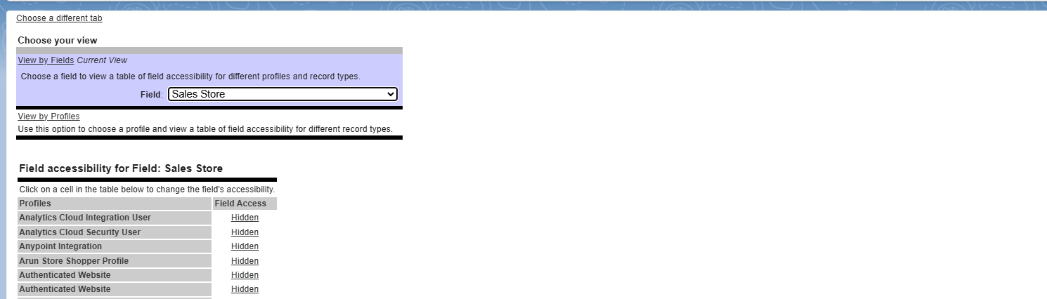Select the Sales Store field to adjust its visibility settings as needed.