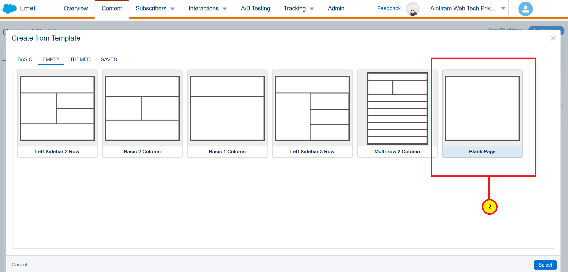 Navigate to content builder, start creating a template. Select blank page in empty template for now (2).