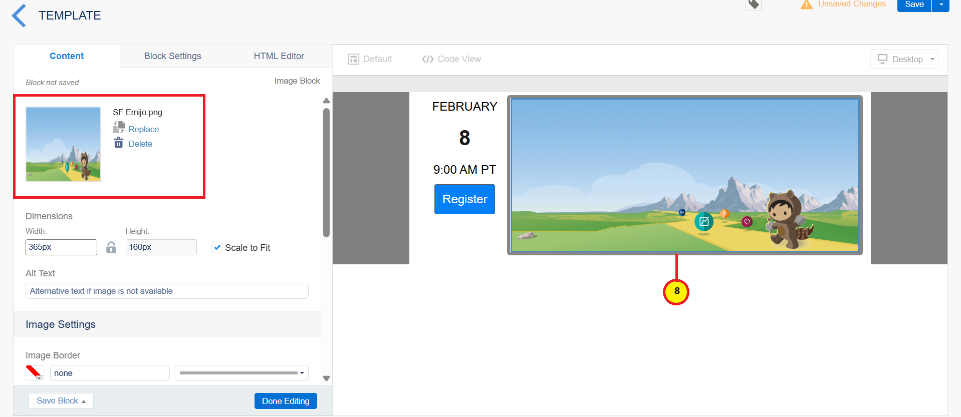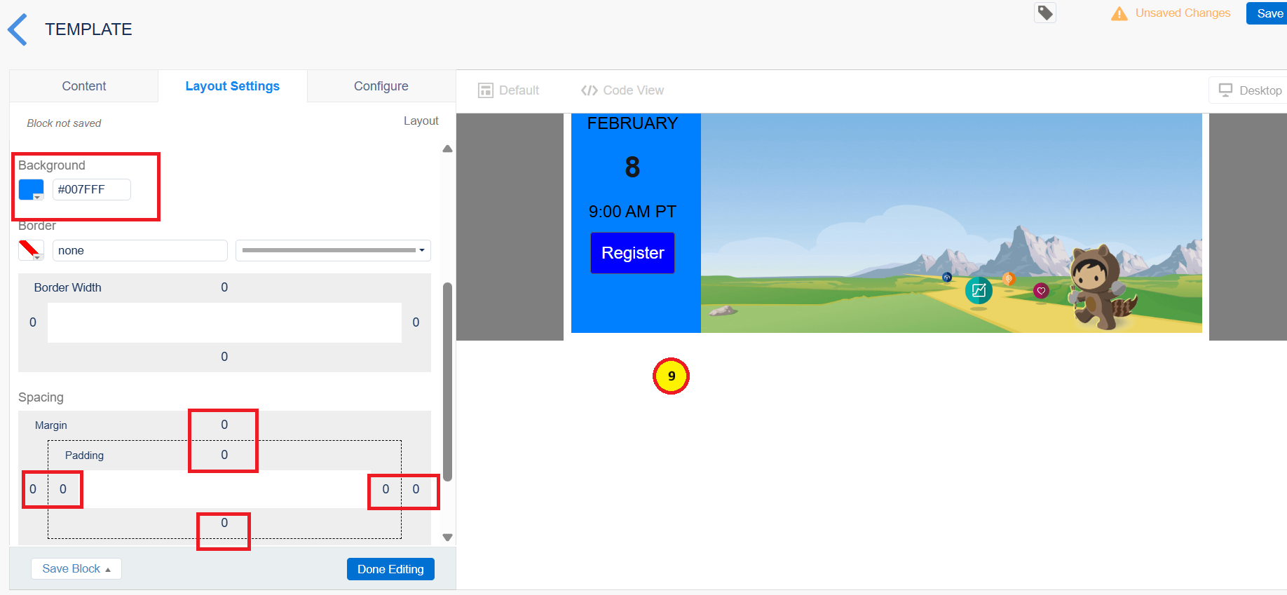 Apply padding to the free form in the layout settings. Click on the image placeholder and add the sample image from your local computer (8).