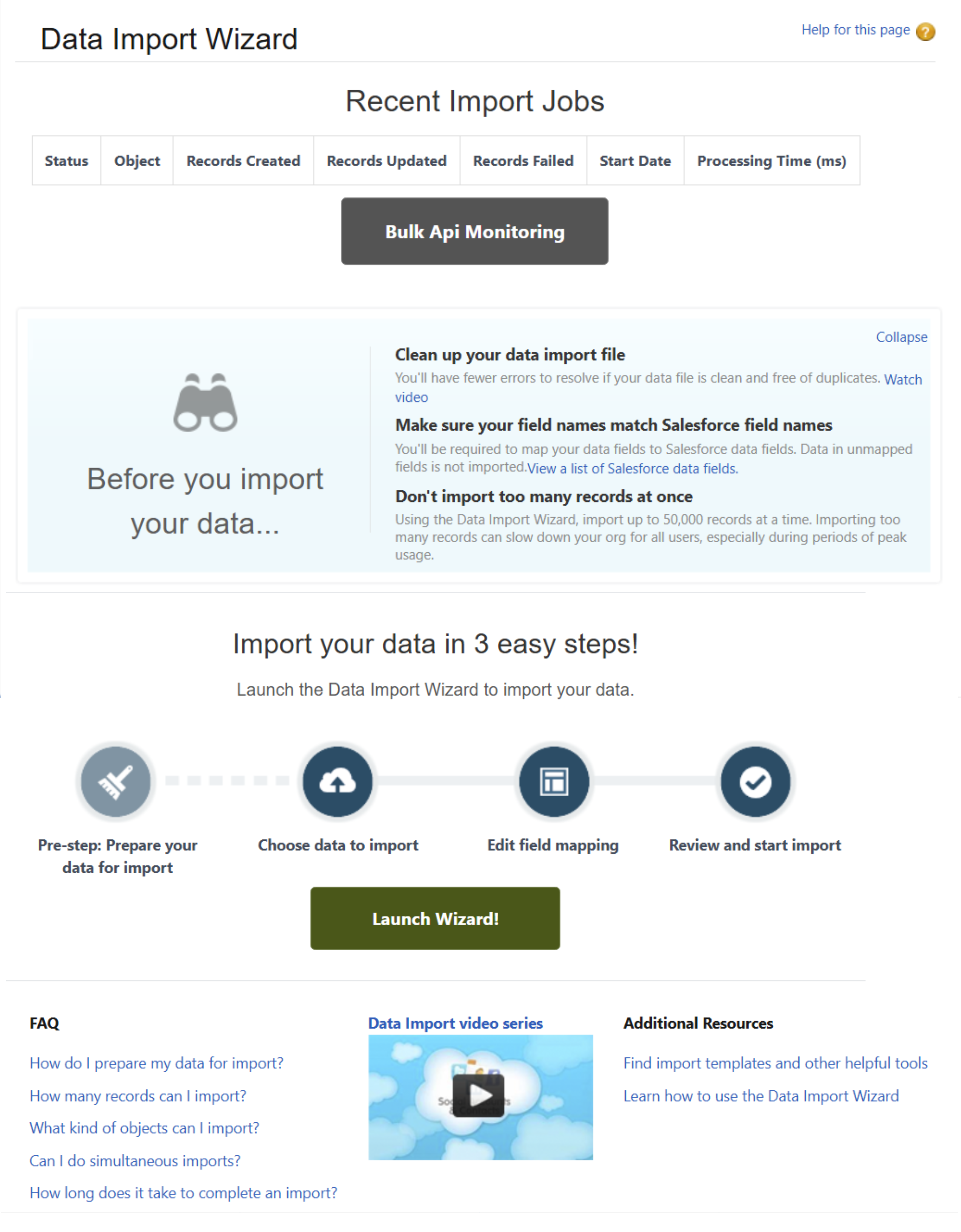 Data Import Wizard is a data manipulation tool available within Salesforce. The data import wizard is used to import external data into Salesforce. Under some limitations. By using Data import wizard, users can perform,
