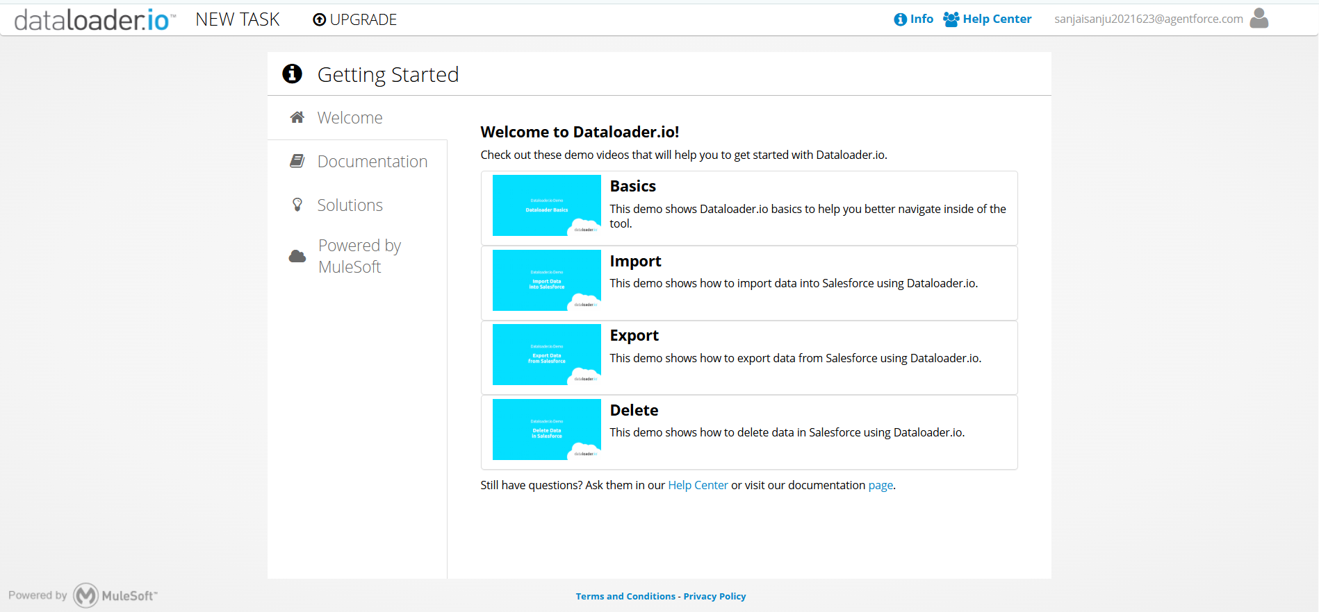 Data Loader IO a web-based tool that allows data manipulation in Salesforce. The user needs to log in to the Data Loader IO via a Salesforce account to use the Data Loader IO. It was developed and launched by MuleSoft. By using Data Loader IO, a user can perform,