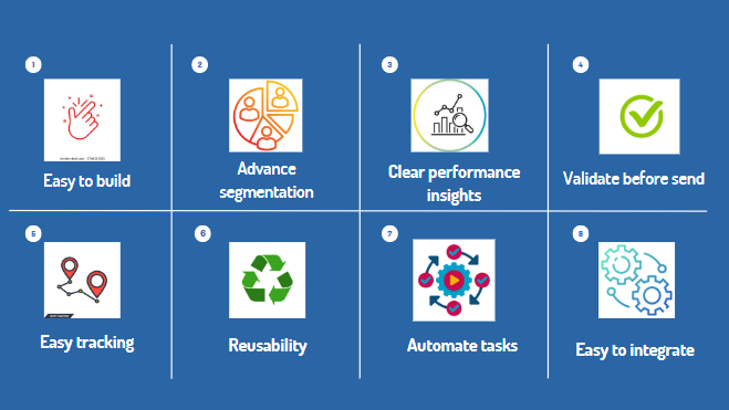 It provides options to help marketers create highly personalized, automated, and data-driven email campaigns without needing any technical expertise. It is a great channel to reach customers quickly with clear details.