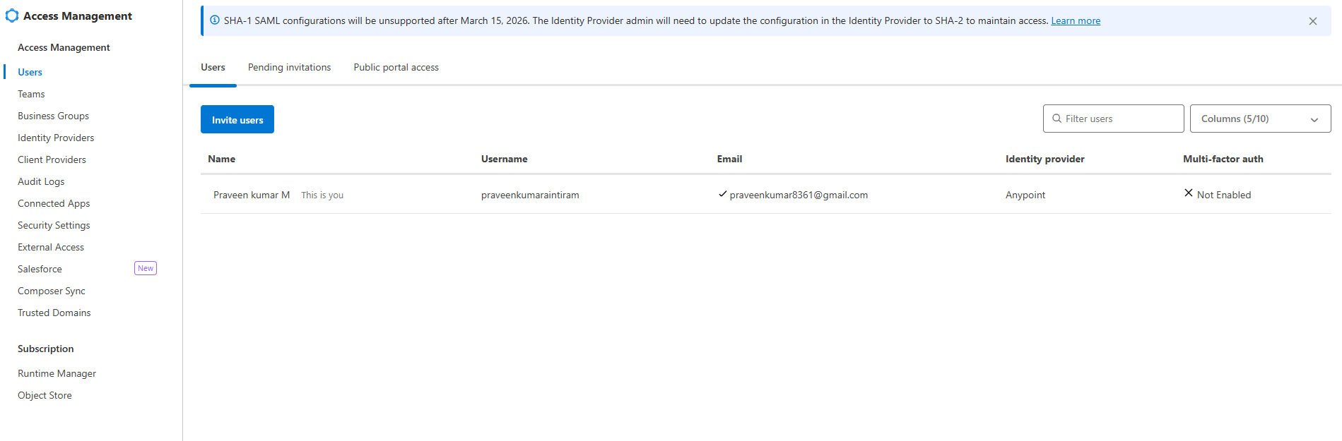 Access Management handles platform level user control. Also provides REST API for you to programmatically access the resources related to the use and client management, organisations and business groups.