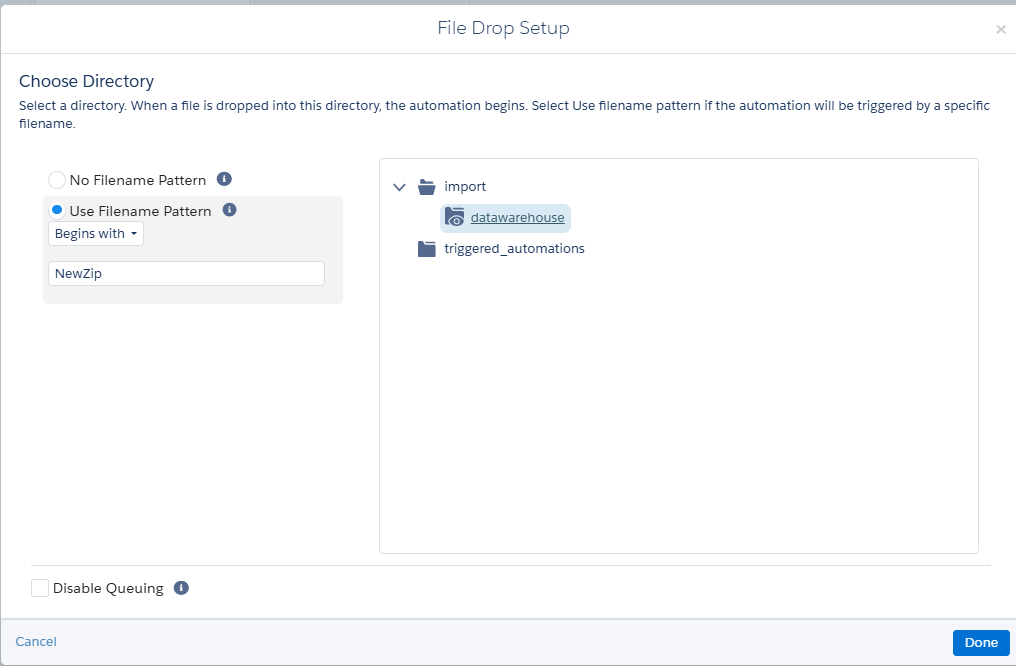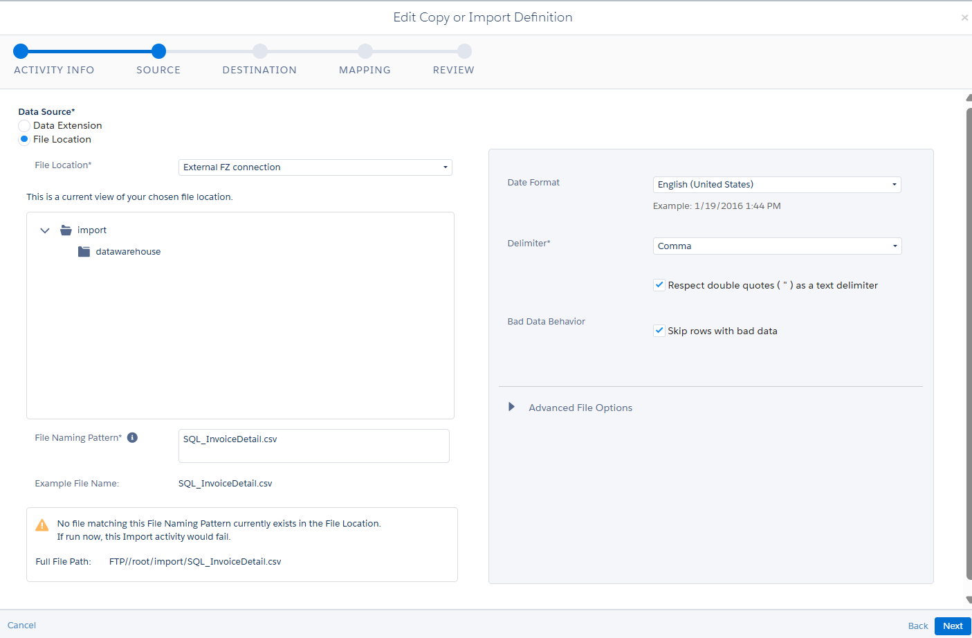 Navigate to automation studio in the marketing cloud. I have used the file-naming pattern which begins with NewZip and configured from where the file will be included into the system (that is folder location).