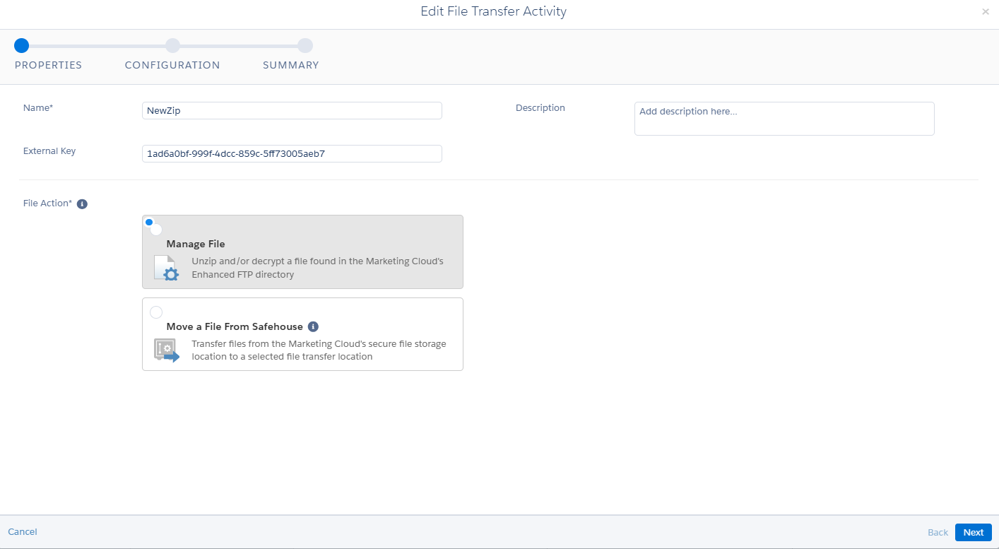 Say for example, if the person is purchasing a product. Soon after the purchase, the company wants to greet and thank the user for purchasing their product. In addition to that they are going to send the invoice for the purchase. The data will come as a batch file in the zipped format from the CRM. Since every purchases will be maintained and recorded in the Sales Cloud and through the batch file, the data will be zipped or encrypted (For security purpose). Let see, how the encrypted file will enter into the system and how the inbound file transfer activity is achieved in SFMC.