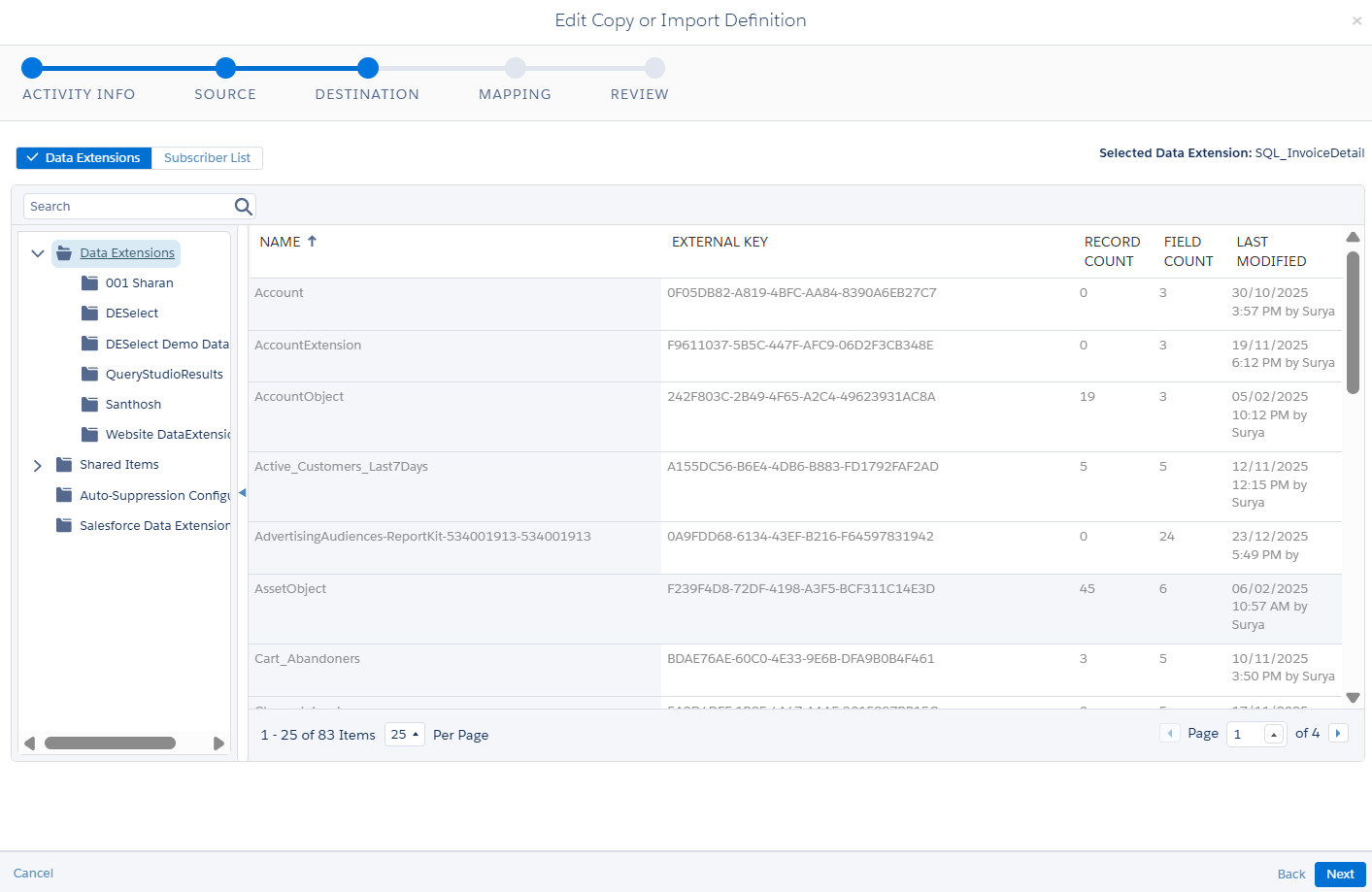 Once the activities has been completed, we could check the log and also the data extension whether data has been imported.