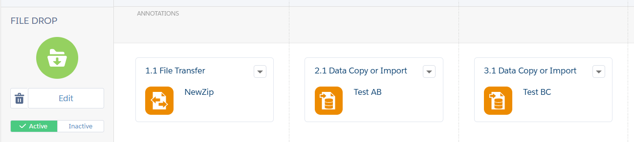 Then drop the file. When you drop the file that contains same naming pattern (Zip file). The automation will start as shown inthe figure.