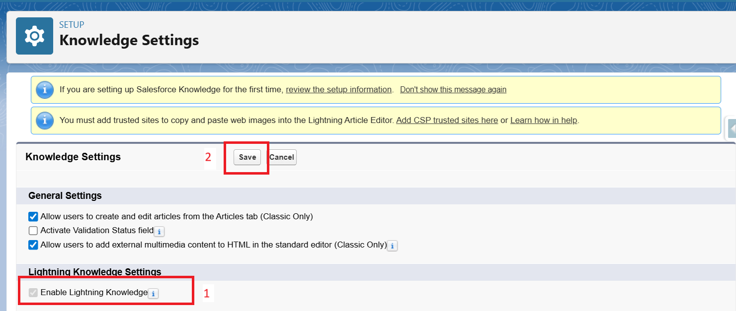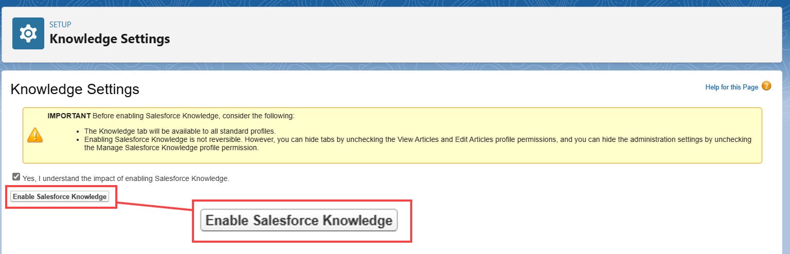 Step 2: Enabling Salesforce Knowledge