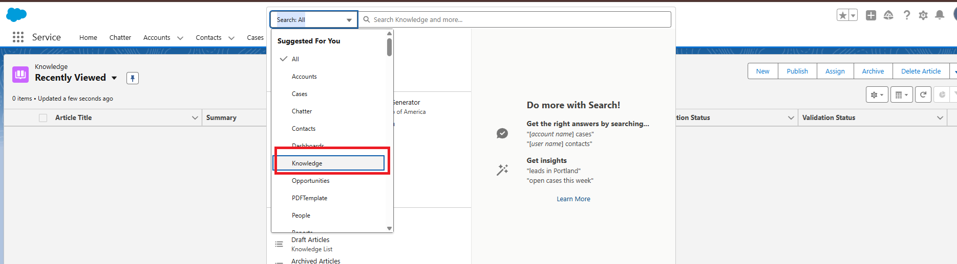 Salesforce offers multiple ways to search for articles: