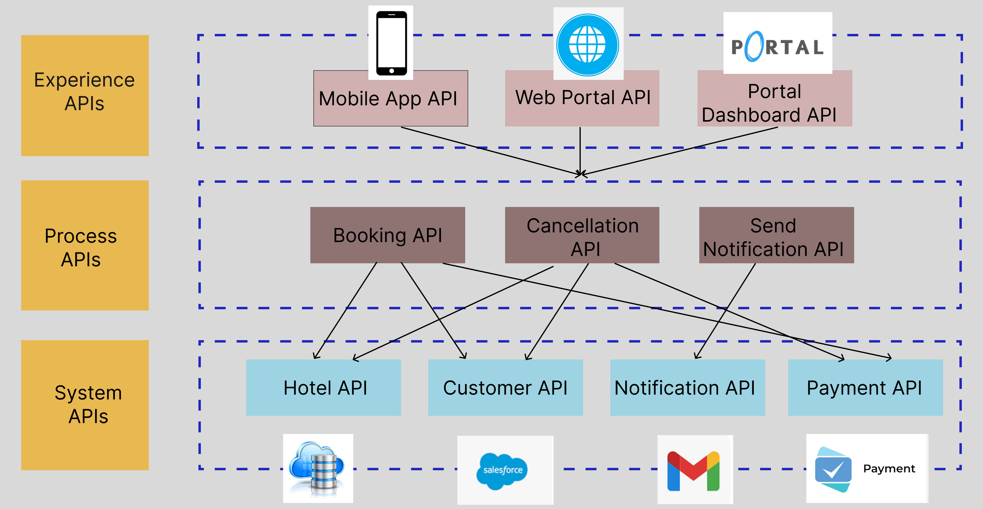 API-led connectivity is the architectural approach which is introduced by MuleSoft for integration that organizes APIs into three distinct layers, creating reusable and purposeful building blocks: System APIs, Process APIs, and Experience APIs. This methodology connects data to applications with a connected network of APIs, making it quicker to manage and better reusing the recipes rather than having direct, point-to-point connections. This approach results in a faster IT delivery and better business agility.