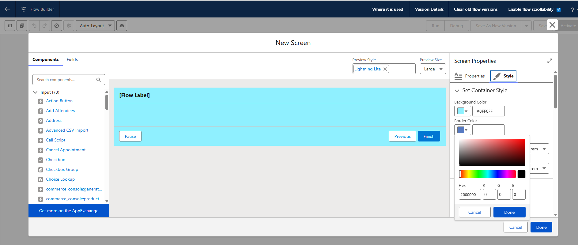 Previously, we did not have the option to style the screen flow components, like changing the button colors or changing the title color, etc. But now, we have the option to change the colors of buttons, titles, etc. By introducing this feature, it enables styling the Flow components. This is where you can build custom UI with styles that look like an LWC component. It increases screen flow usage going forward since we can do maximum custom UI development using this screen flow itself by having this feature without code.