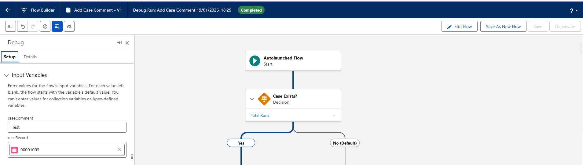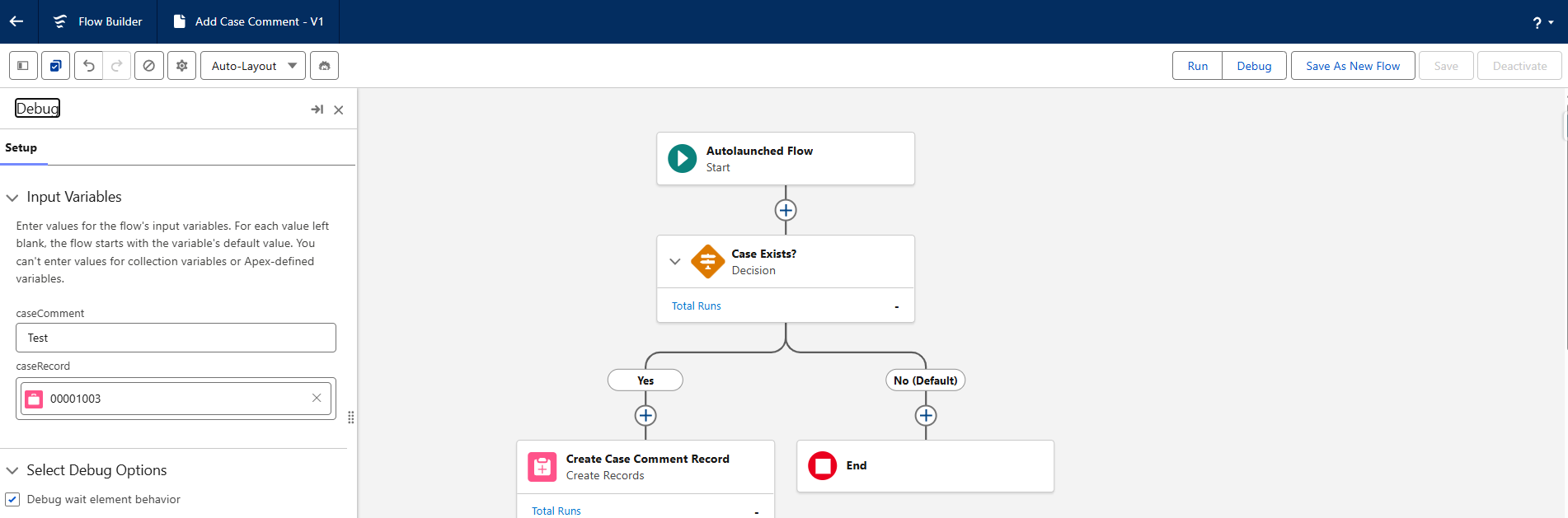 While debugging a flow, when you enter input values for screen flows or record-triggered flows, you may want to run the debug again to review the details. Earlier, you had to enter the inputs again every time. Now, you don’t need to re-enter the inputs repeatedly. For the first run, the inputs are stored in the cache, and they are retained for subsequent debug runs and are not wiped out.