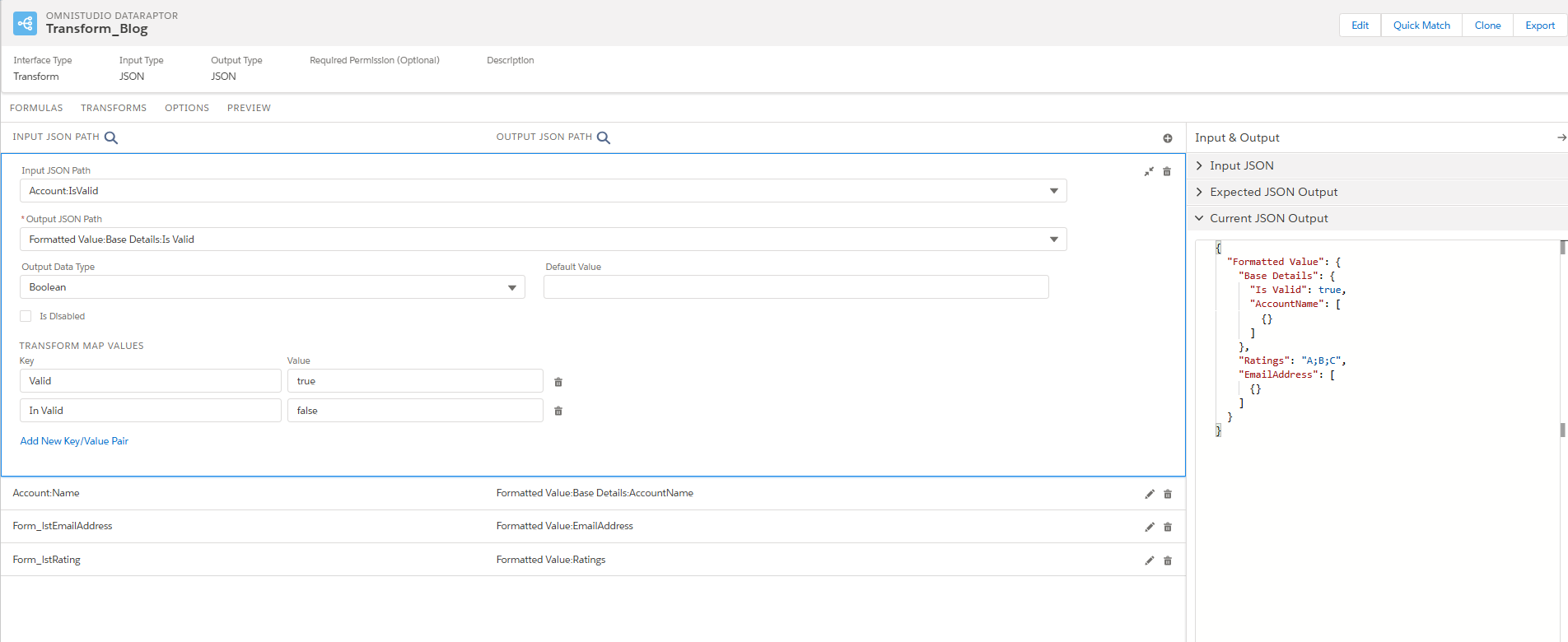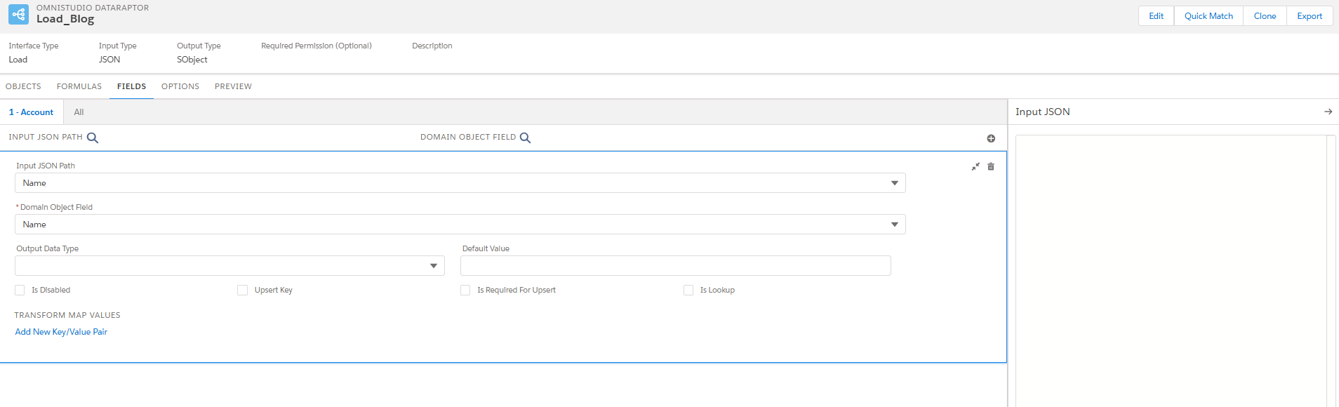 In this tab, we need to map the JSON input path attribute to the fields available in the salesforce environment,