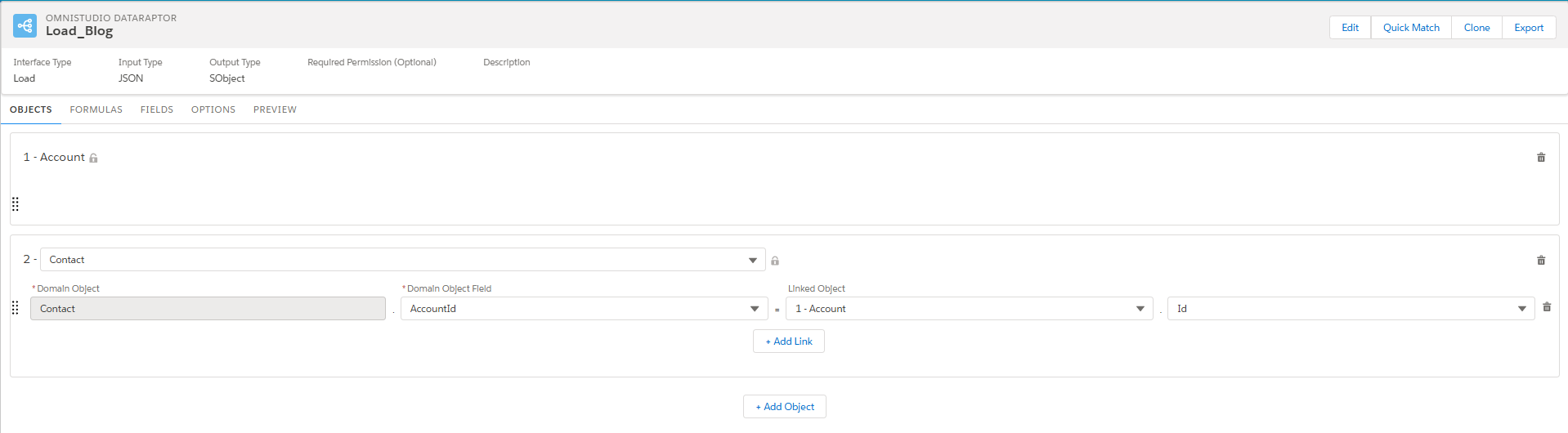 1 - Account: Parent object which is Account configured for loading the data.