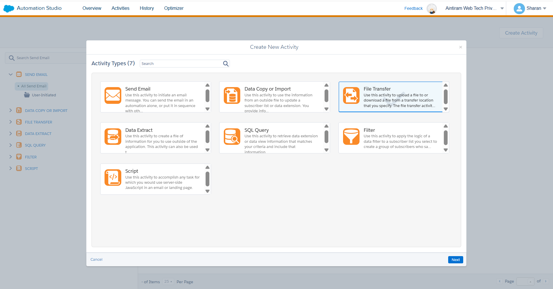 In the Salesforce marketing cloud, transferring the data is the most crucial part. On a day-to-day basis, the marketer analyzes the data or includes the data into the system for further engagement. Engagement of the customer is closely monitored by the marketer to nurture businesses. The file transfer activity helps analyze the data or including the data into the system. There are two types of file transfer activity. They are inbound and outbound. In this blog we will deeply discuss how to create an outbound file transfer activity in Salesforce marketing cloud.