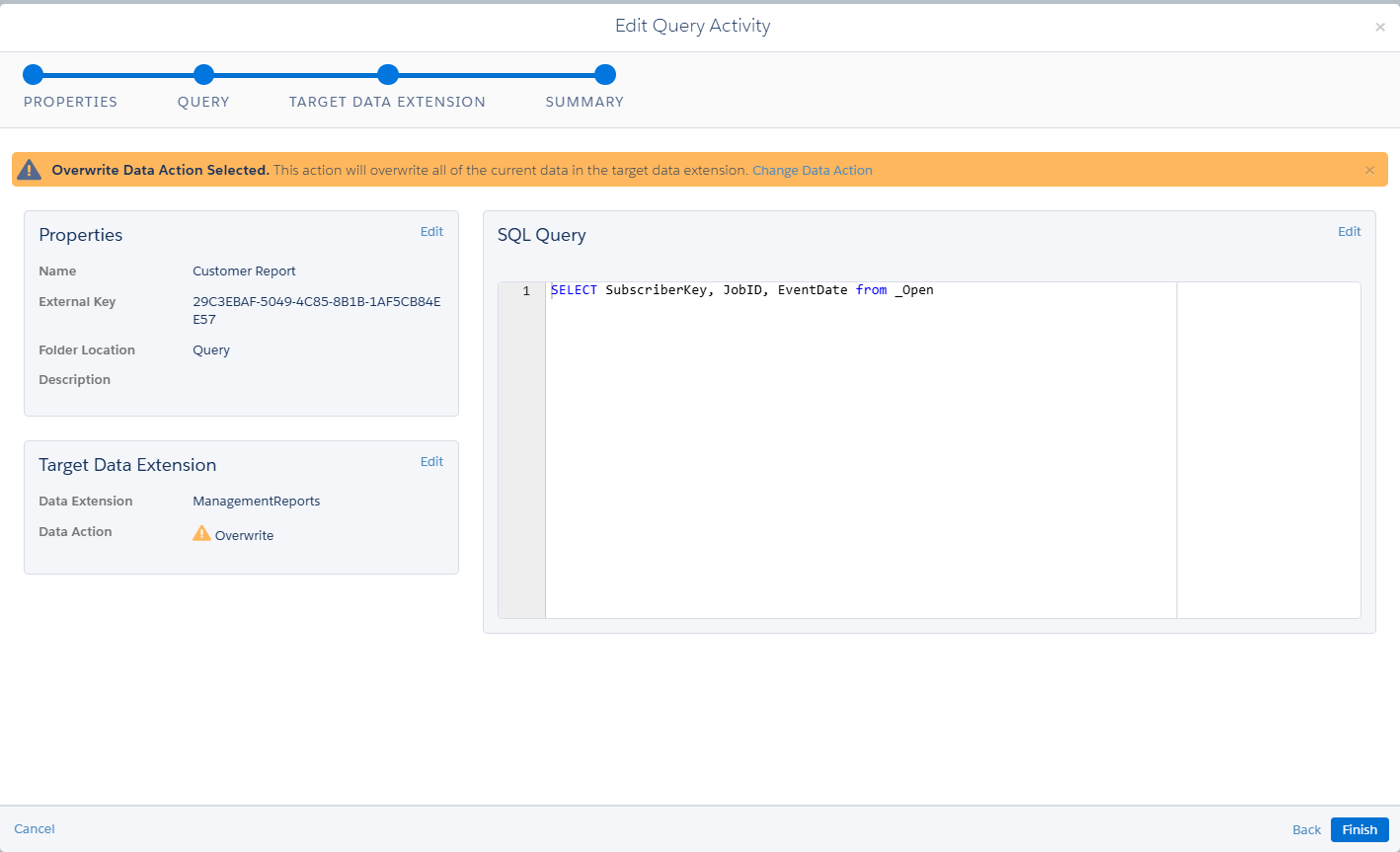4. We need to generate a report of subscribers who have opened our emails in the last six months (i.e., all engaged subscribers). The report should include Subscriber Keys, Job IDs, and Event Dates.
