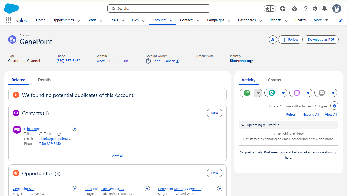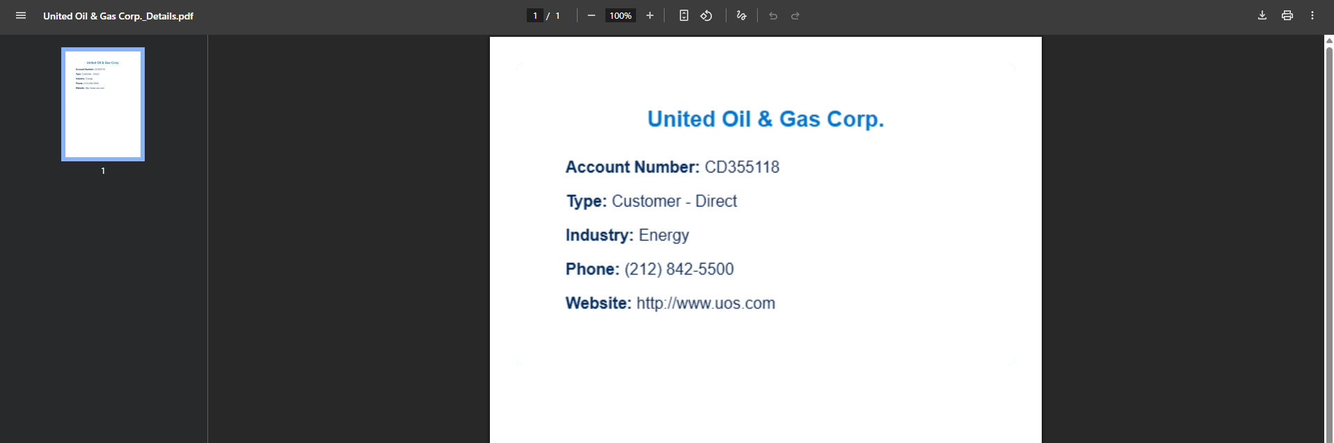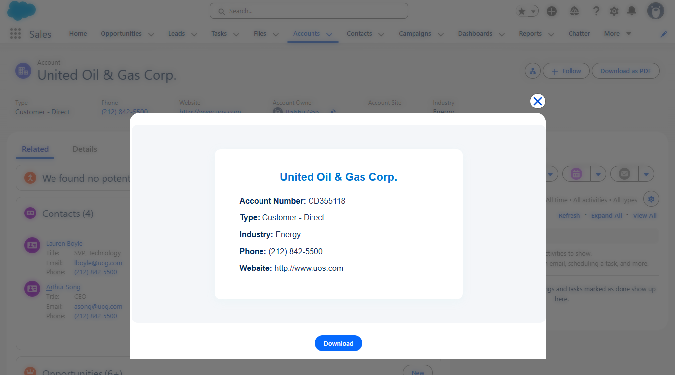 Click "Download as PDF" button in Account Record Page.