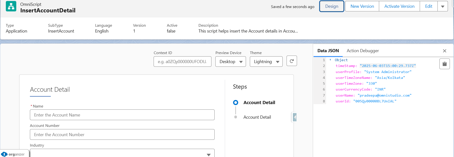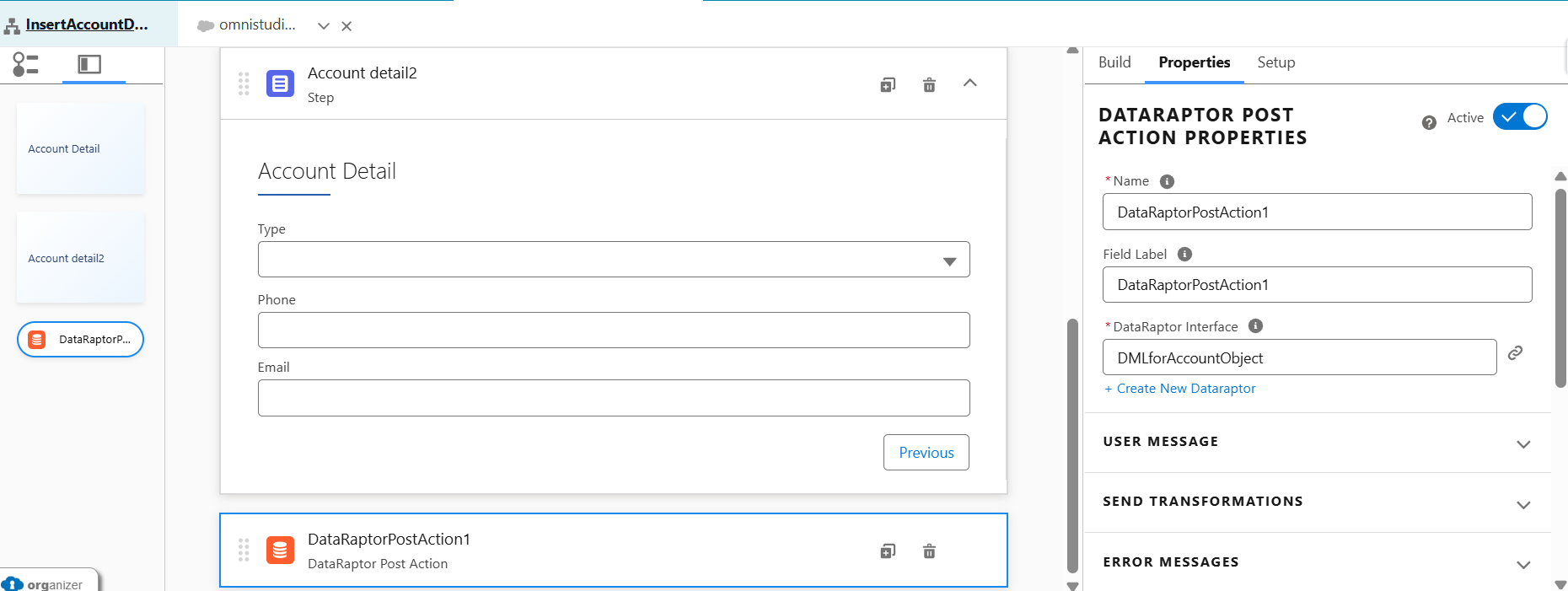 For a better understanding below are the steps to create an Account using a simple Omniscript
