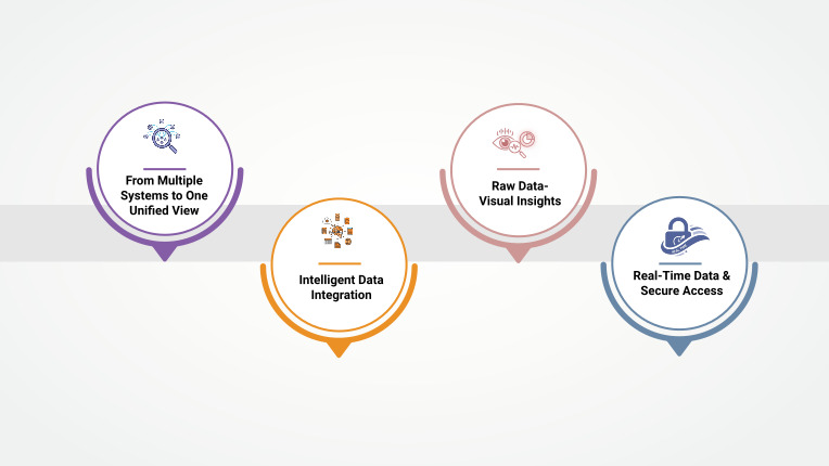 Our client’s business processes were distributed across multiple systems With one process happening in one system and the next in another. This fragmented setup made it challenging to consolidate data for forecasting and future planning. Since the data was mostly in raw format, it was difficult to visualize and interpret. Users also had to log into multiple systems just to compile and prepare data for analysis, creating delays and inefficiencies.