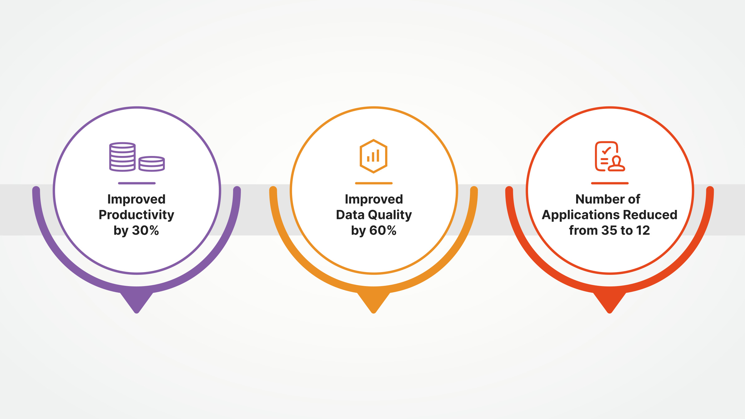 Productivity improved by 30%, data quality improved by 60%, number of applications reduced from 35 to 12.